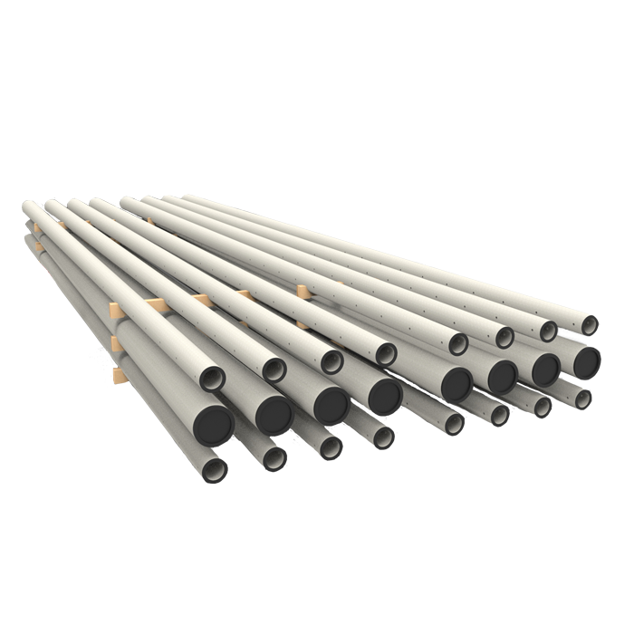 Стойки конические центрифугированные СКЦ 11,5-34 (Б3.507.1-3.04) - индустриальные железобетонные изделия, имеющие форму вытянутой сужающейся балки с круглым поперечным сечением. Особенностью конструкций является полая середина, позволяющая уменьшить общий вес стойки и обеспечить возможность провода коммуникаций и кабеля внутри элемента. Изделие имеет равную толщину стенки по всей длине, зависящую от несущей способности: 60, 85 и 95 мм.